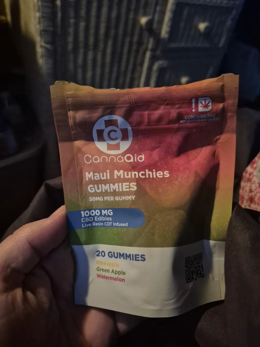 Ingredients: Sugar, Organic Corn Syrup, Water, Hemp-Derived Extract, Pectin, MCT Oil, Citric Acid, Flavoring, Isomalt, Coloring, Terpenes